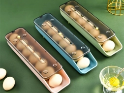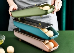 A kompakt hűtőtojás-rendező rendet és védelmet biztosít. A dátumjelölős tolófedélnek és az automatikus előretoló mechanizmusnak köszönhetően mindig könnyű a hozzáférés, jobb a frissesség-áttekintés és helyet takarít meg. Körülbelül 7 tojást fogad, és stóhozható.