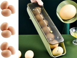 Nincs többé billegő doboz és összetört tojás. Ez az okos tojástároló tolófedéllel biztonságosan a helyén tartja a tojásokat, és a lejtésnek köszönhetően egy kivétele után a következő automatikusan előregördül. A beépített dátumcsúszka segít megjelölni a betárolás vagy a fogyasztás napját, így a frissesség mindig ellenőrzés alatt van.