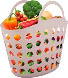 Sokoldalú kosár kör alakú nyílásokkal a légáramlás biztosítására, így alkalmas gyümölcsökhöz, zöldségekhez és gombaszedéshez. A könnyű, mégis masszív, minőségi műanyag szerkezet bírja a mindennapos használatot otthon, a kertben és útközben is.