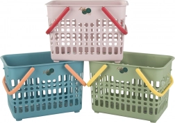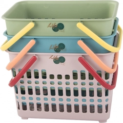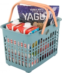Praktikus kosár masszív szerkezettel és lehajtható fogantyúkkal – kiváló kis bevásárlásokhoz, élelmiszerek hordásához, kirándulásokhoz és apróságok tárolásához otthon. A nyitott, rácsos struktúra biztosítja a jó szellőzést és a tartalom gyors áttekintését, a robusztus műanyag pedig a hosszú élettartamot.