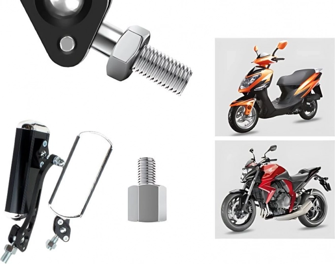A tükör szabványos M10 tartóval van felszerelve és a mellékelt adapter lehetővé teszi az M8-as tartós járművekre való felszerelést. Az univerzális szerelési rendszer biztosítja a kompatibilitást a legtöbb motorkerékpár, robogó és négykerekű modellel. Finoman állítható fogantyúja lehetőséget nyújt az ideális szög beállítására a vezetés biztonságának növelése érdekében.