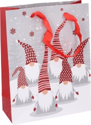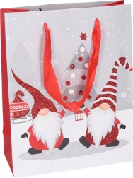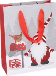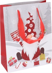 Stílusos, S méretű ajándéktáska karácsonyi motívumokkal, ideális kisebb ajándékok elegáns csomagolásához. Minőségi kivitel és erős fül a könnyű és biztonságos hordozáshoz. A 17,5 × 23,5 × 8 cm méretek tökéletesek könyvekhez, kozmetikumokhoz vagy apró meglepetésekhez.