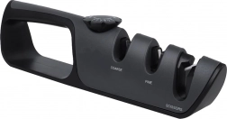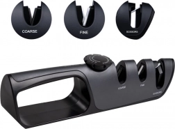 Használat: fogja meg szilárdan a fogantyút, a pengét egy irányban maga felé húzva vezesse, és válassza a megfelelő nyílást: először a Coarse fokozatot az él kiegyenesítéséhez, majd a Fine fokozatot a finiseléshez. Az ollóhoz a dedikált Scissors nyílást használja. A pengét védő burkolat levehető és folyó víz alatt leöblíthető.