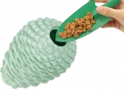 Az interaktív jutalomfalat-kúp ideális eszköz minden korosztályú kutyának. Töltsd meg táppal vagy jutalomfalattal, és hagyd, hogy a kutya természetes módon érdemelje ki a jutalmat – gurítással, rágással és különféle stratégiák kipróbálásával. A texturált felület egyúttal hozzájárul a fogak mechanikus tisztításához.