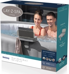 A Bestway 4 az 1-ben polccal a Lay-Z-Spa pezsgőfürdőben minden szükséges dolog karnyújtásnyira lesz. Ideális megoldás a kényelem és a funkcionális innovációk kedvelőinek!