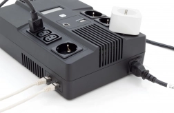 Az integrált mikroprocesszoros vezérlés felügyeli az UPS működését, megakadályozza a túlterhelést, valamint az akkumulátor mélykisülését és túltöltését, és időben figyelmeztet LED- és hangjelzésekkel.