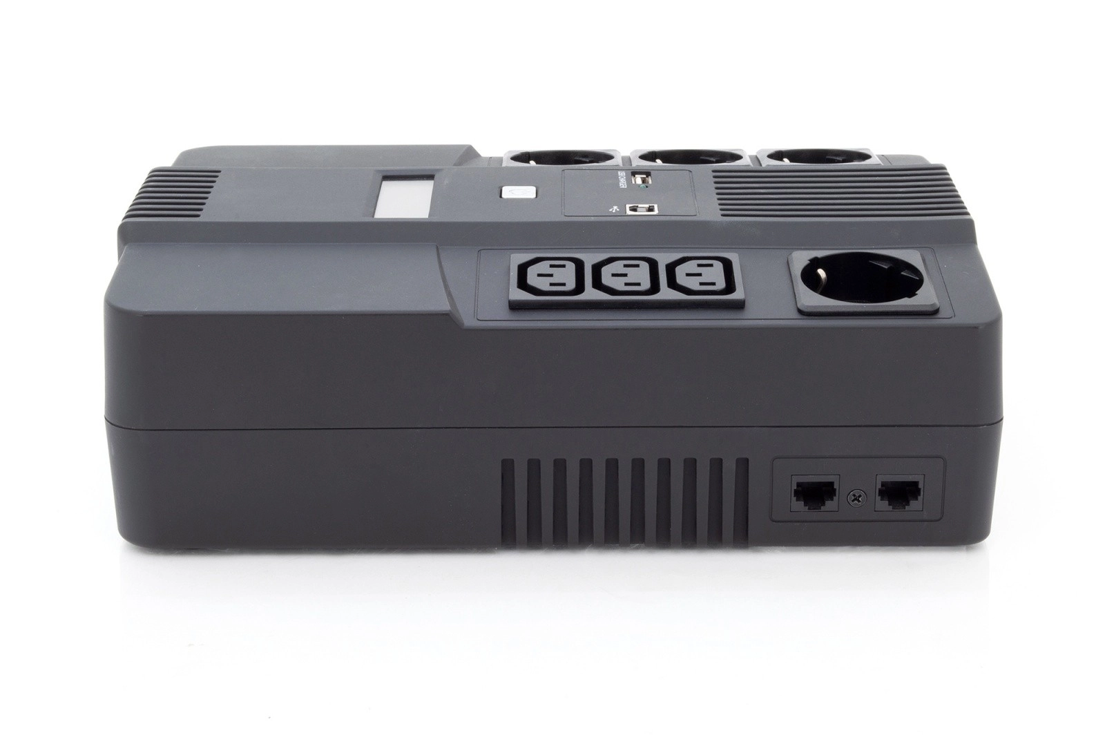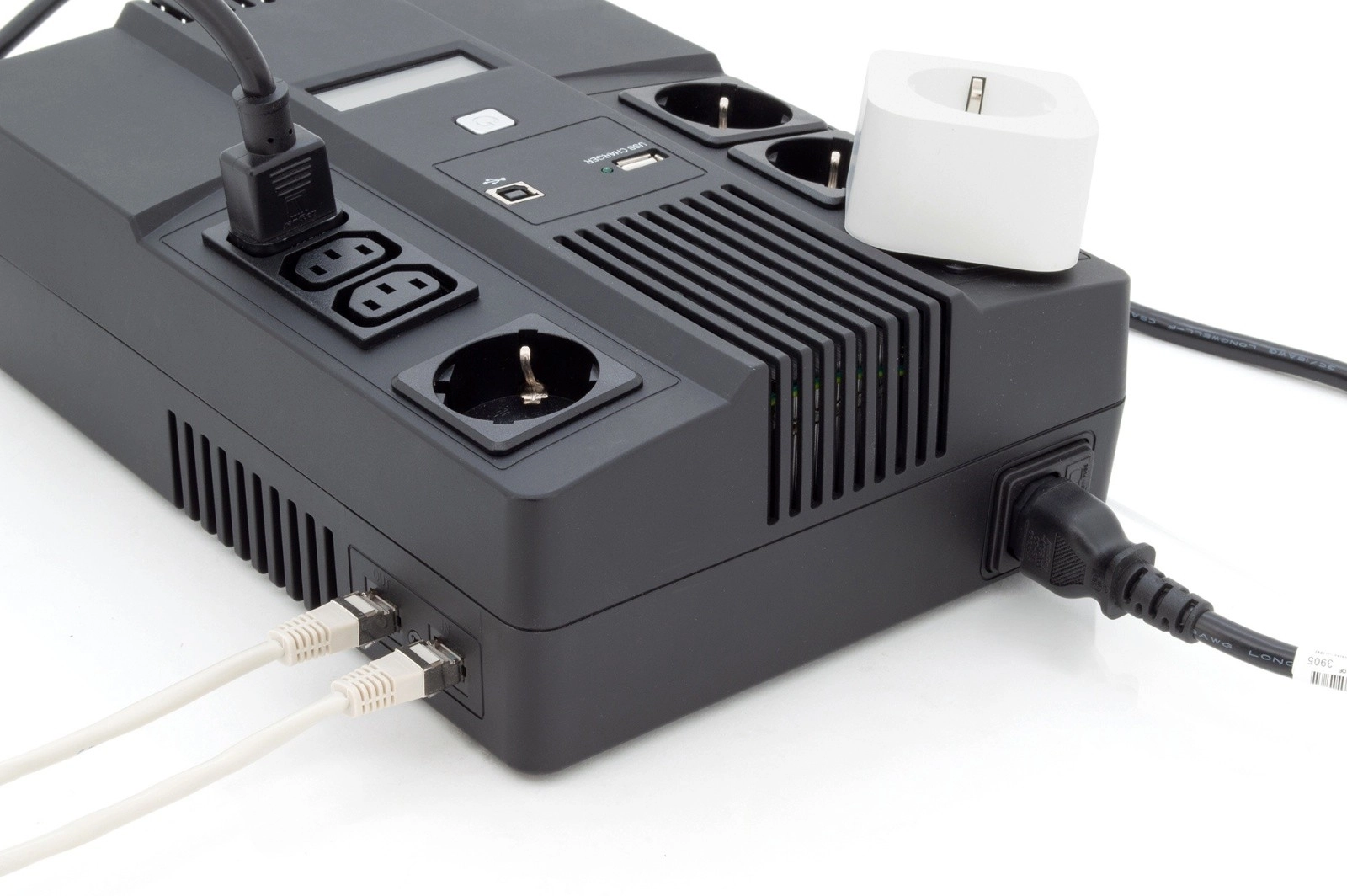 A DIGITUS line-interactive UPS 600 VA / 360 W teljesítménnyel stabil tápellátást biztosít otthoni és irodai számítógépekhez és perifériákhoz. A AVR automatikusan kiegyenlíti a hálózati ingadozásokat, míg a mikroprocesszoros vezérlés a megbízható és biztonságos működésről gondoskodik. Kompakt kialakítása könnyedén elfér az asztalon vagy a PC mellett.