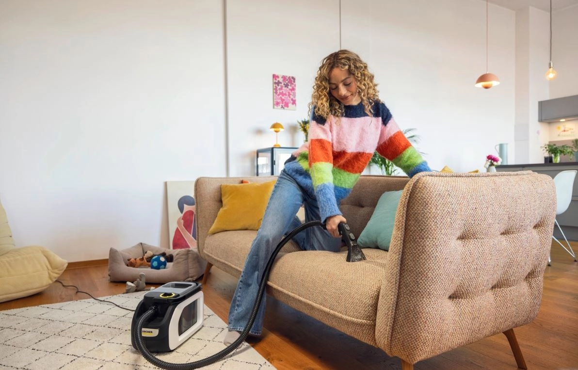 SE 3 Compact mosó-porszívó alapos tisztítást kínál kompakt kivitelben. Ez a nagy teljesítményű és energiatakarékos készülék ideális a textil felületek tisztításához. Kis méreteinek köszönhetően könnyen hordozható és mindig használatra kész, bármikor szükség legyen rá.