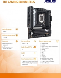 Az Asus TUF Gaming B860M-PLUS alaplap valódi ékkő az alaplapok között, kifejezetten igényes játékosok és technológiai rajongók számára tervezve. Az LGA1851 foglalat és az Intel Core Ultra processzorok támogatása révén páratlan teljesítményt és stabilitást nyújt intenzív használat mellett.