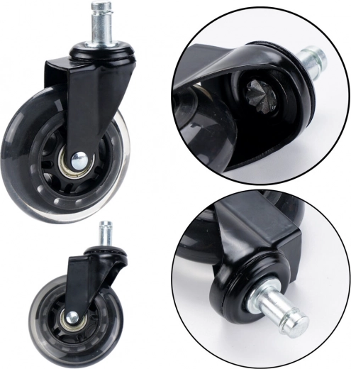 A puha és rugalmas felületű gumis görgők ideálisak fa padlóra, panelekre, laminátumokra, csempére és szőnyegekre is, megvédve őket a sérülésektől. Minden egyes görgő stabil fémszerkezetet és akár 50 kg teherbírást biztosít, ami megbízhatóságot nyújt még intenzív irodai vagy játék székkel való használat során is.