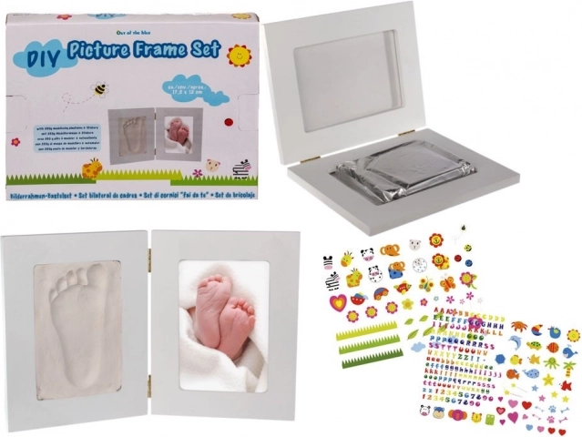 Alkoss egyedi emléket kisbabád első hónapjairól. Ez az elegáns keret a fotó számára készült rést ötvözi a biztonságos formázó masszába készített lenyomat helyével, amely a csomag része. Egyszerűen készítsd elő az agyagot, finoman nyomd bele a kezecskét vagy a lábacskát, majd hagyd megszáradni. Az eredmény egy eredeti dekoráció, amely örökre megőrzi az emlékeket.