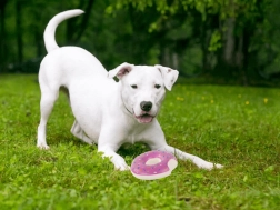 Az integrált síp nyomásra vagy harapásra hangot ad ki, amely motiválja a kutyát a hosszabb és vidámabb játékra.