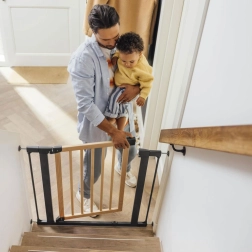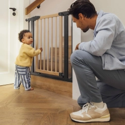 A speciális biztonsági mechanizmus megakadályozza, hogy a gyerekek kinyissák a korlátot. Kétirányú nyitás, automatikus záródás és egykezes használat biztosítja a könnyű használatot.