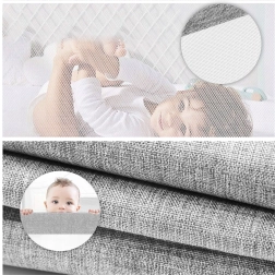 - Lehajtható felső sín, légáteresztő háló, levehető és mosható huzat, oldalzseb