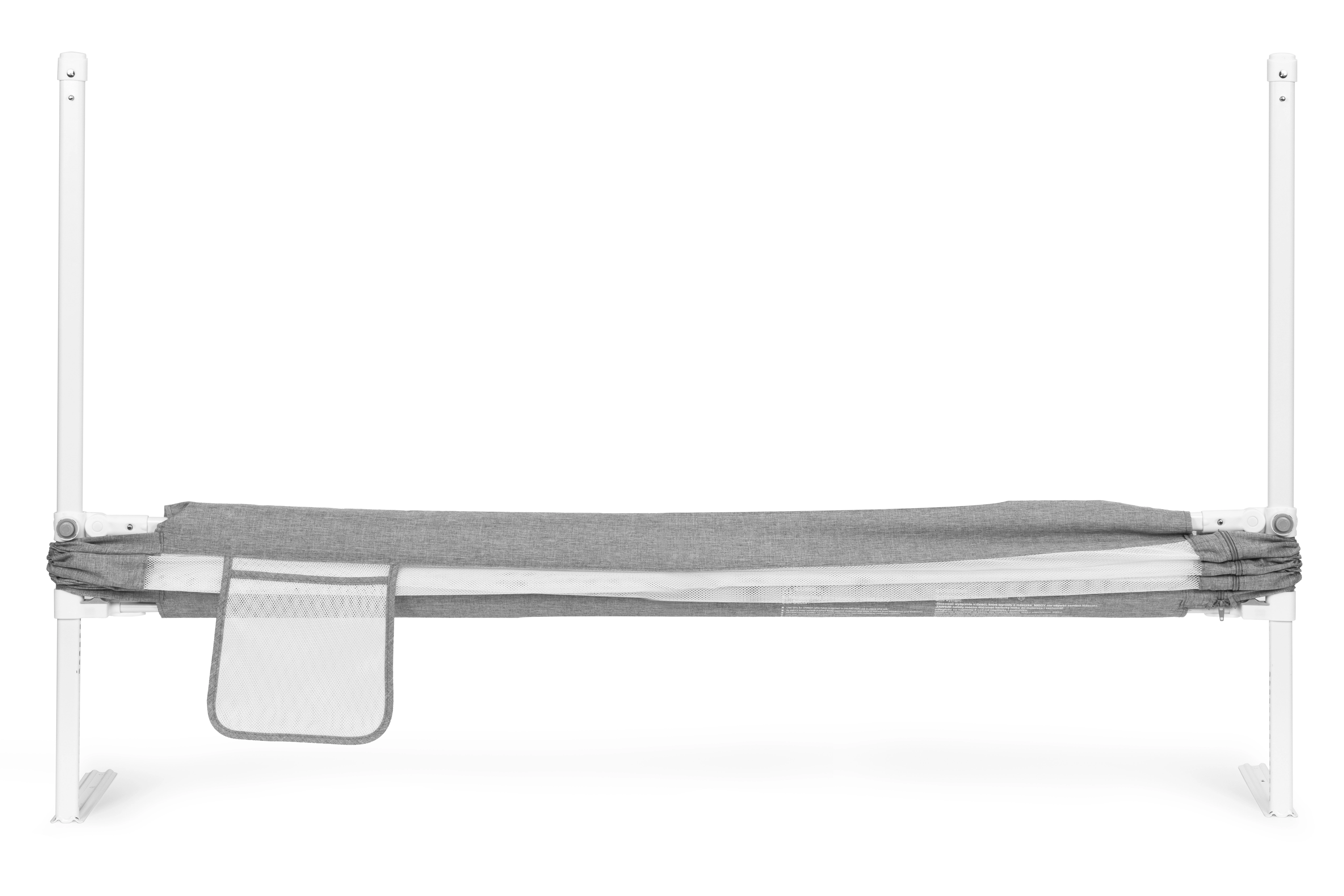 A magasság könnyen igazítható a matrac vastagságához. Az univerzális rögzítőrendszer a legtöbb ágyhoz illeszkedik, és stabil rögzítést biztosít.