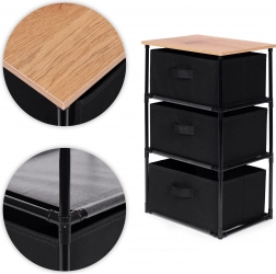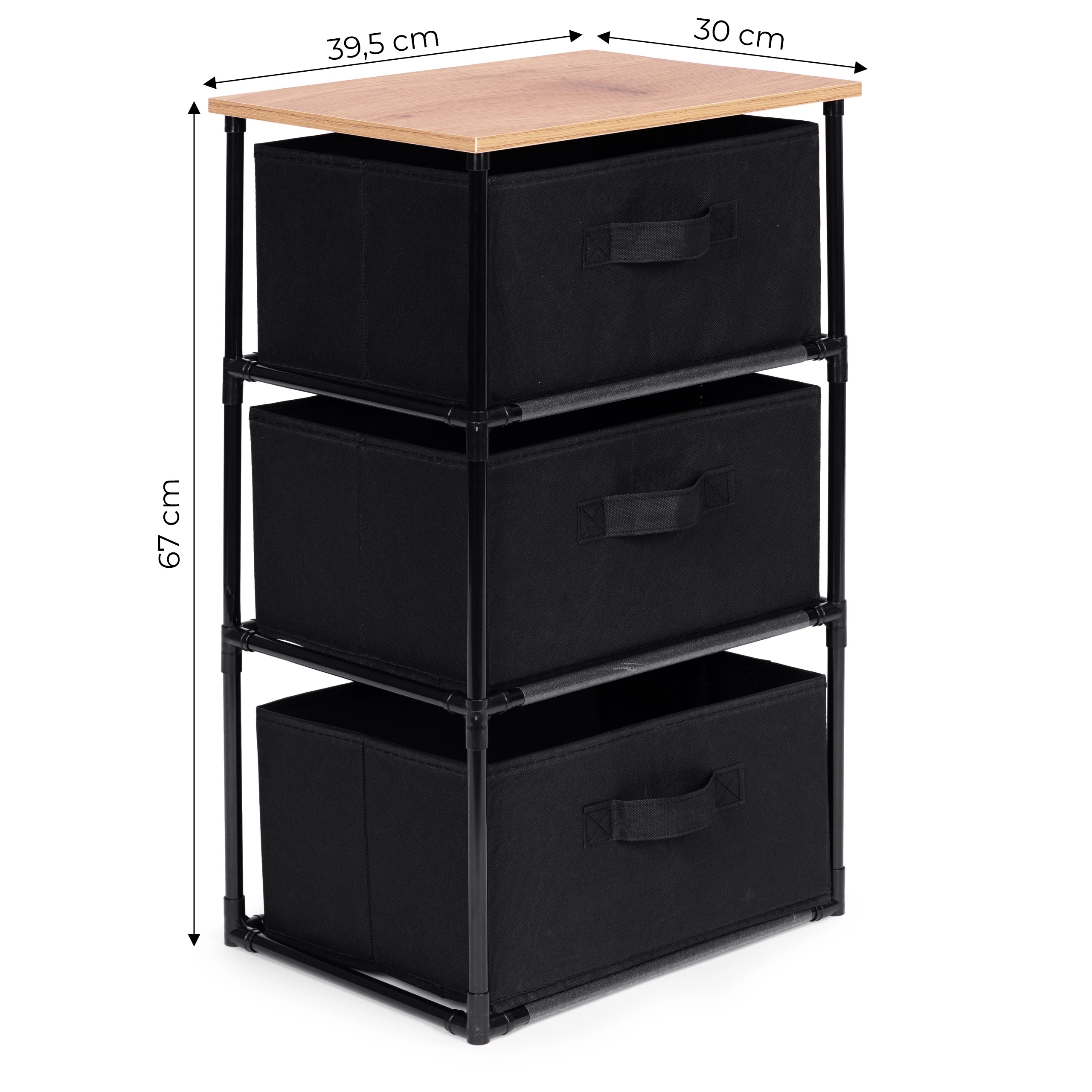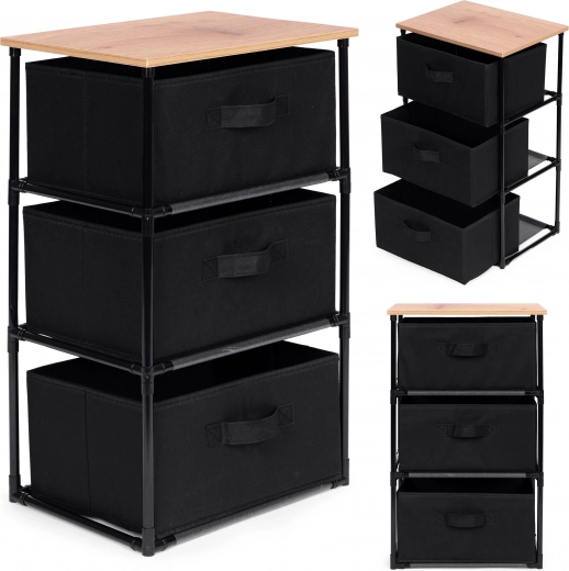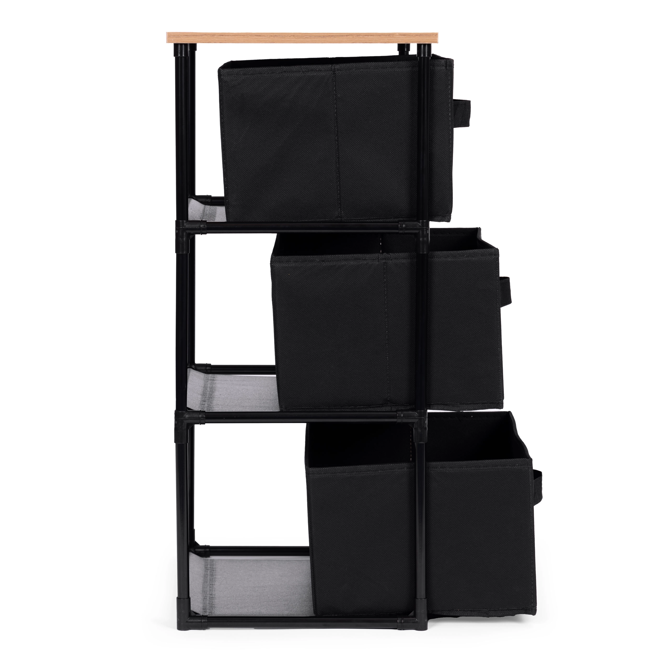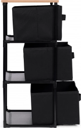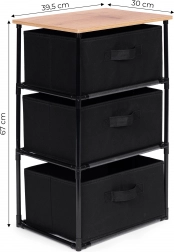 A polc három kivehető kosarat tartalmaz tartós textilből, alkalmas ruhák, könyvek, játékok és egyéb tárgyak tárolására, könnyű hozzáféréssel a praktikus fogantyúknak köszönhetően.