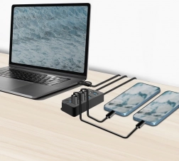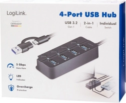 Élvezze a villámgyors adatátviteli sebességet akár 5 Gbit/s-ig a USB 3.2 Gen 1 portokon. Ideális nagy fájlok, magas felbontású videók és igényes alkalmazások számára. Minden port saját kapcsolóval rendelkezik, ami lehetővé teszi az egyes eszközök szelektív aktiválását vagy deaktiválását másokra való hatás nélkül. Az LED jelző mutatja minden port állapotát első ránézésre. Egy 5 V/3.5 A (17.5 W) tápegység is tartozik, amely a nehéz eszközökhöz is stabil áramellátást biztosít.