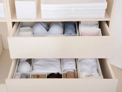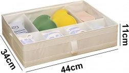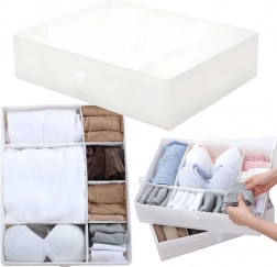 Frissítse fel ruhásszekrényét ezzel a praktikus rendezővel, amely tökéletes rendszerezést biztosít minden ruhadarabnak. Az okos kialakítás különböző méretű rekeszeket kínál, amelyek alkalmasak fehérneműk, zoknik vagy ingek tárolására. A kompakt méretek 44x34x11 cm majdnem minden fiókba elfér.