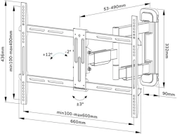 Az 5,3-49 cm mélységbeli állíthatósága ideális a 100x100-tól 600x400 mm-ig terjedő VESA szabványoknak megfelelő képernyőkhöz. Ez a tartó ideális különböző helyiségekhez és megkönnyíti az optimális képernyő elhelyezést.