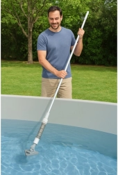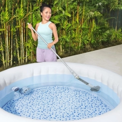 Tartsa a vizet kristálytisztán erőfeszítés nélkül. A BESTWAY vezeték nélküli porszívót kis föld feletti medencékhez és pezsgőfürdőkhöz tervezték, ahol megbízhatóan felszívja a homokot, leveleket és lerakódásokat. A könnyű teleszkópos nyélnek köszönhetően kényelmesen elér minden sarkot és medenceformát.