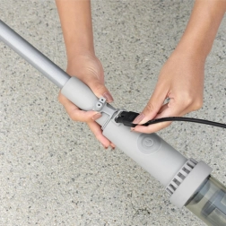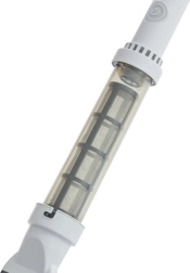 Beépített akkumulátora akár 50 perc üzemidőt biztosít, és USB-n keresztül 4–5 óra alatt tölthető. A szennyeződések a könnyen hozzáférhető rozsdamentes acél szűrőben gyűlnek össze, amelyet egyszerűen kivehet és kiüríthet. A forgatható, kerekekkel és kefékkel szerelt szívófej alapos tisztítást biztosít az aljon és a falakon anélkül, hogy károsítaná a felületet.