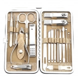Ez az univerzális szett mindent kínál, amire szüksége lehet a kéz- és lábápoláshoz. A minőségi, stainless steel eszközök tiszta vágást, pontos reszelést és kíméletes bőrápolást biztosítanak. A stílusos bézs tok áttekinthető rendet tart és ideális a szállításhoz.