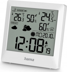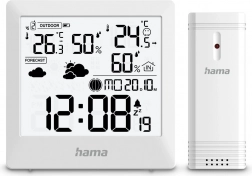 A stílusos, fehér Hama Palawan otthoni időjárás-állomás pontosan méri a hőmérsékletet és a páratartalmat beltérben és kültéren, ikonokkal jeleníti meg az időjárás-előrejelzést, a Hold fázisait, és órát, naptárt, valamint szundi funkciós ébresztőt kínál. A vezeték nélküli érzékelőnek, az áttekinthető LCD-nek és a változási trendek kijelzésének köszönhetően az otthoni körülményeket mindig kézben tarthatja. A környezetbarát FSC csomagolás óvja a természetet.