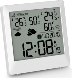 Az időjárás-állomás praktikus óraként is működik 12/24 órás formátummal, megjeleníti a hét napjait, a Hold fázisait, és szundi funkciós ébresztőt kínál.