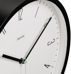 Ennek a fali órának az időtálló dizájnja modern és klasszikus enteriőrben egyaránt érvényesül. A markáns arab számokkal ellátott fehér számlap azonnali leolvashatóságot biztosít, míg a három mutató (óra-, perc- és másodpercmutató) maximális áttekinthetőséget nyújt az időről. A fekete perem elegáns kontrasztot és univerzális megjelenést ad.