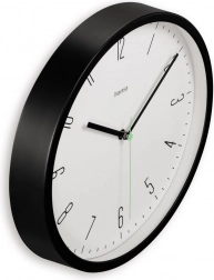 Az elegáns, 25 cm átmérőjű Capri fali óra fekete kivitelben egyesíti a pontos kvarc szerkezetet, a klasszikus analóg kijelzőt és a kiválóan olvasható, arab számokkal ellátott fehér számlapot. Stílusos kiegészítő bármely enteriőrbe, három precíz mutatóval és FSC tanúsítvánnyal rendelkező, környezetbarát csomagolással.