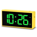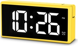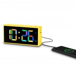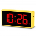 Stílusos és praktikus digitális ébresztőóra energikus sárga színben, nagyméretű, több színben megjeleníthető LED-kijelzővel, programozható ébresztéssel és 1 A-es USB-porttal telefon töltéséhez. A 4 fényerőszintnek, köztük a teljes kikapcsolásnak töltés közben, a 12/24 órás váltásnak, a szundi funkciónak és az ébresztési hangerő szabályzásának (halk/normál/hangos) köszönhetően ideális a hálószobába és a gyerekszobába is.