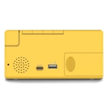 A sárga Hama Ibiza digitális ébresztőóra elegáns dizájnt és mindennapi funkcionalitást ötvöz. A nagy, könnyen olvasható LED-kijelzőn beállítható a megjelenítés színe (fehér, kék, zöld, piros) és látványos átmenetek is, így a kinézetet a saját stílusához igazíthatja. Áttekinthetően megjeleníti az időt és a dátumot (nap/hónap/év), és támogatja a 12/24 órás formátumot.