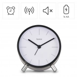 A fekete Flores ébresztőóra időtálló megjelenést és megbízható funkcionalitást ötvöz. A letisztult fehér számlap, a kontrasztos mutatók és a jól látható indexek révén az idő nagyobb távolságból is kiválóan leolvasható. A minimalista ház stabil fém lábakon ízléses kiegészítő a hálószobában, dolgozószobában vagy nappaliban.