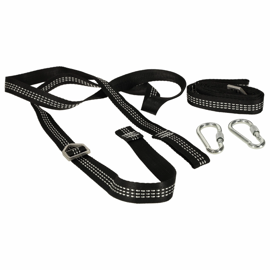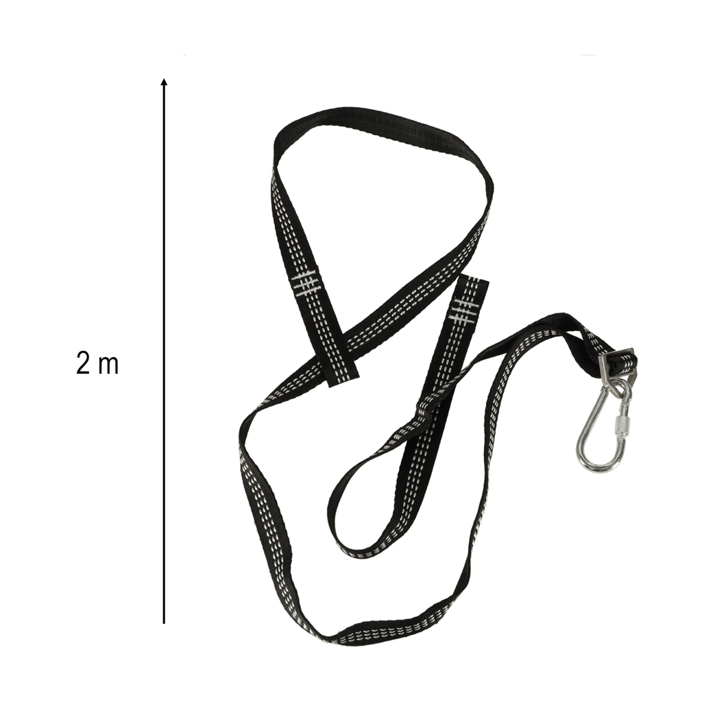 Ideális szerelőszett minden hinta rajongónak, legyen szó akár a kertben, a teraszon vagy beltérben való használatról. A készlet két rendkívül tartós 2 méter hosszú szíjat és két karabinert tartalmaz, maximális teherbírásuk 300 kg. Ez magas stabilitást és biztonságot nyújt még intenzív használat esetén is.
