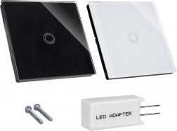 Az érintőfénykapcsoló kiváló minőségű, modern eszköz, amely eleganciát kölcsönöz a belső térnek. Edzett üvegből készült, amely karcálló, hosszú élettartamot és könnyű tisztítást biztosít. Az LED háttérvilágításnak köszönhetően sötétben is jól látható.