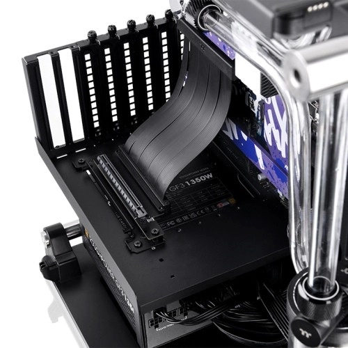 A Thermaltake PCI-E 4.0 kábel vertikális szerelési kialakítással és 130 mm hosszúsággal ideális a legigényesebb játékrendszerekhez. Támogatja a széles körű GPU megoldásokat olyan funkciókkal, mint a dupla 90°-os szög, nagy átviteli sebesség és EMI árnyékolás.