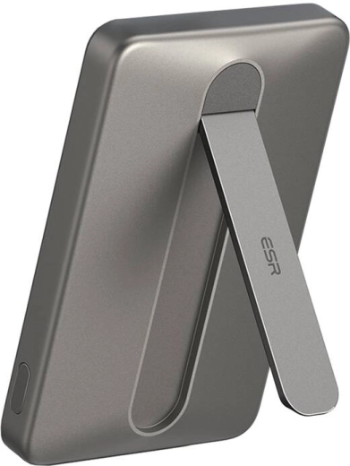Az erős mágneses rögzítésnek (1200 g) köszönhetően a powerbank stabilan tart iPhone 12 és újabb modelleken, MagSafe tokokon és kompatibilis ESR kiegészítőkön. A beépített állvány díjnyertes dizájnnal (Design Award 2023, Red Dot 2023) kényelmes tartalomfogyasztást és videohívásokat tesz lehetővé ideális szögben.