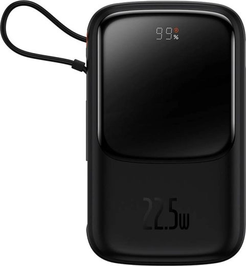 A Baseus Qpow Pro egy gyakorlati és kompakt powerbank, ideális mobilis felhasználók számára, akiknek útközben van szükségük energiára. A beépített USB-C kábel és két további kimeneti port lehetővé teszi akár három eszköz egyidejű töltését, ami sokoldalú segítővé teszi.