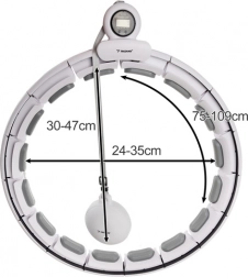 A 75–109 cm között állítható kerületnek köszönhetően a méret könnyen a testalkathoz igazítható – szegmensek eltávolításával. Az állítható súly (20–37 cm) pontos intenzitásválasztást tesz lehetővé, így hatékonyan formálja a derekat, a hasat, a csípőt és a hátat. A gyorszáras rendszer legfeljebb 50 másodperc alatti összeszerelést biztosít szerszám nélkül, így a karika könnyen csomagolható és bárhová magaddal viheted.