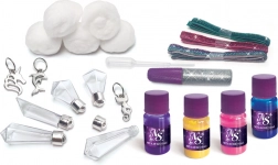 A Nebulous Stars kreatív szettel egyedi nyakláncot készíthetsz üvegcsével, amelyben elrejtheted titkos kívánságodat. Az elkészítés könnyű és szórakoztató – válassz színeket, adj hozzá csillámokat, és alkoss varázslatos rétegeket, amelyek a hétköznapi üvegcsét személyes talizmánná változtatják. Ideális kis alkotóknak, akik szeretik a színeket, a fantáziát és a saját projekteket.