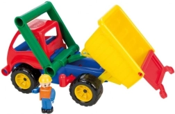 Fedezze fel a masszív gyerek billenőplatós teherautót, amely a vadabb játékot is bírja. Minőségi kivitelének és erős felépítésének köszönhetően napi használatra is alkalmas otthon, a kertben és a játszótéren. A mechanikus működtetés nem igényel elemet, és támogatja a gyerekek természetes fantáziáját.