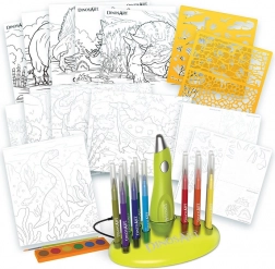 A DinosArt airbrush kifestő készlet ideális minden kis művész számára, aki szereti a dinoszauruszokat és a kreatív szórakozást. A készlet része egy