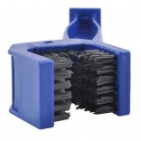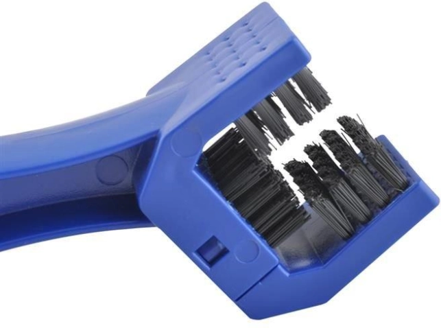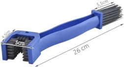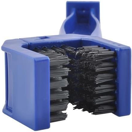 Az univerzális tisztítókefe a kerékpár- és motorkerékláncok alapos ápolására készült. A háromoldalú fej egyszerre több oldalról fedi a láncot, míg a másik, egyenes kefefejes rész a fogaskerekek, csavarok és más nehezebben hozzáférhető helyek tisztítására szolgál. A tartós nylon sörték hatékonyan távolítják el a zsírt és a szennyeződéseket, ami hozzájárul a simább működéshez és a lánc hosszabb élettartamához.