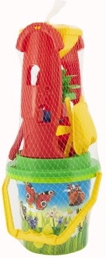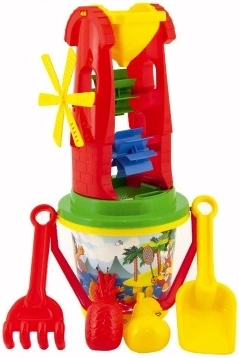 A vödör, a lapát, a gereblye és a formák segítségével várakat, alagutakat és homoksütiket építhettek. Minden könnyű, helytakarékos és egyszerűen hordozható.
