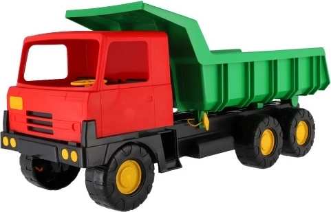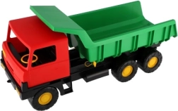 A közkedvelt Tatra 815 örök klasszikus. Robusztus műanyag kivitel, funkcionális billenőplató és a piros fülke–zöld plató mutatós színösszeállítása teszi ideális játékká játszótérre és kertbe. A gyerekek homokot, kavicsokat vagy játékokat szállíthatnak, így fejlesztve fantáziájukat és finommotorikájukat.