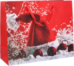 Stílusos, M méretű karácsonyi ajándéktasak az elegáns csomagoláshoz. A praktikus 26 × 32 × 10 cm-es méret elfér könyvekhez, kozmetikumokhoz és kisebb ajándékokhoz. Válasszon téli motívumot, és élvezze a gyors és egyszerű csomagolást vágás és ragasztás nélkül. A tasak minőségi, erős papírból készült, és bármely karácsonyi alkalomhoz illik.