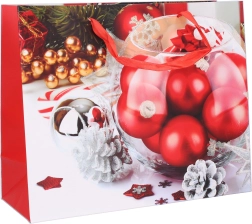 Tegye könnyebbé az ajándékok karácsonyi csomagolását egy praktikus, M méretű papírtasakkal. Az univerzális 26 (sz) × 32 (m) × 10 (mé) cm-es méretnek köszönhetően kényelmesen elférnek benne különféle ajándékok – a könyvektől és játékoktól egészen a kozmetikai szettekig. Az elegáns karácsonyi motívumok ünnepi hangulatot kölcsönöznek ajándékának felesleges csomagolópapír nélkül.