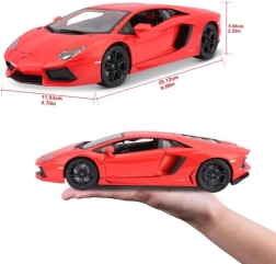 A BBURAGO modell hűen adja vissza a LAMBORGHINI Aventador drámai vonalait és aerodinamikáját. Az 1:18-as méretarányban polcon vagy vitrinen is feltűnő, a minőségi fém kivitelnek köszönhetően pedig robusztus és prémium hatású. A látványos narancssárga fényezés kiemeli a szupersportautó exkluzív karakterét.