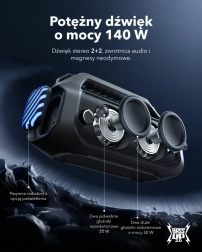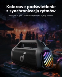 Élvezze a kiváló hangteljesítményt a Soundcore Boom 2 Plus hordozható hangszóróval, amely lehetővé teszi, hogy kedvenc zenéjét a maximumon élvezhesse. A hangszóró IPX7 vízálló, ami azt jelenti, hogy nem kell aggódnia, hogy a medence vagy a strand mellé viszi. Indítsa el a partit LED világítással, amely hangulatot teremt.