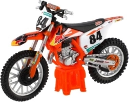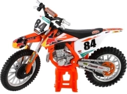 A modell hűen ábrázolja a valóságos motokrossz motorkerékpár részleteit, beleértve a tervezési elemeket és a funkcionális alkatrészeket, mint például a gumik és a kormány.